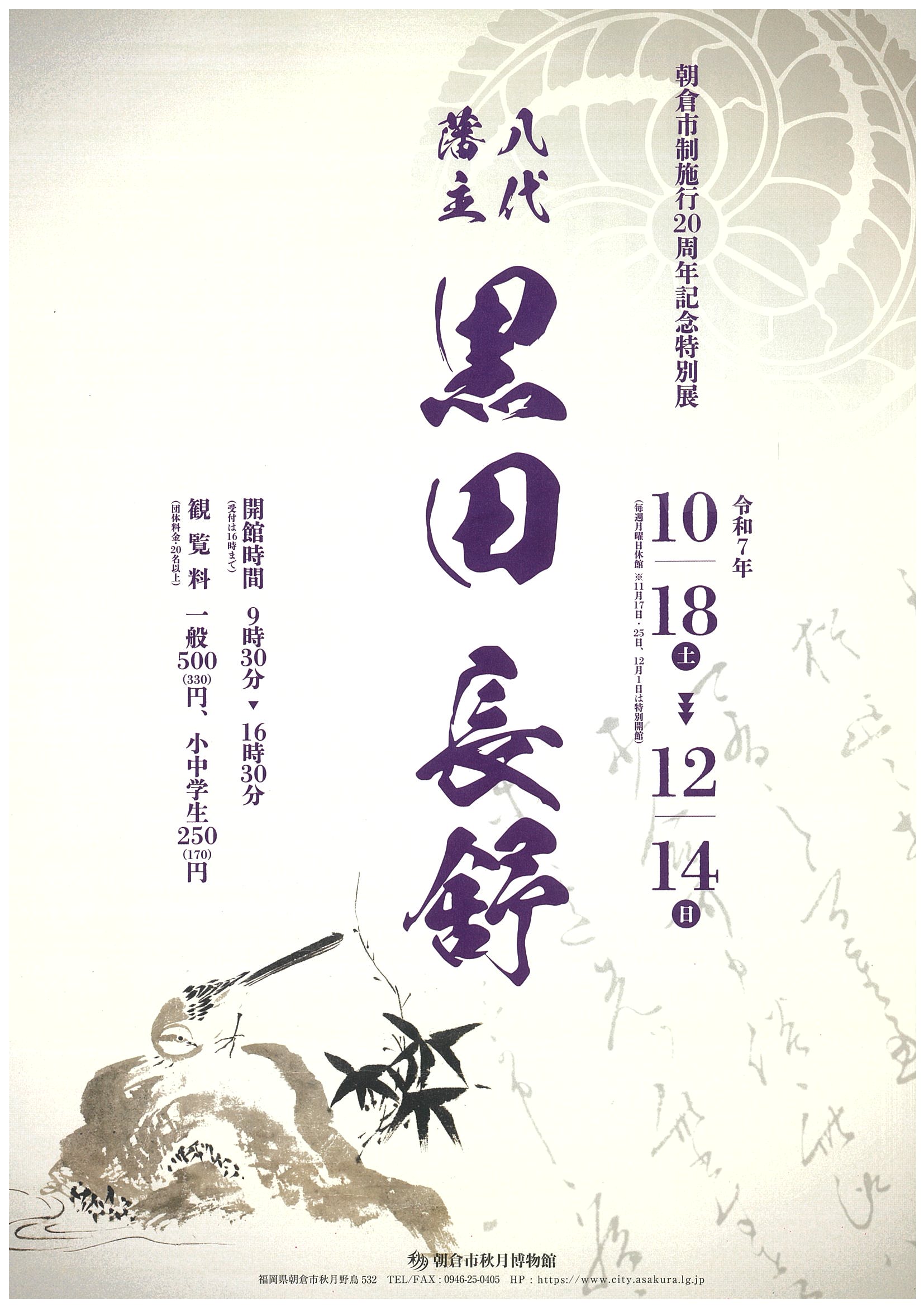 朝倉市制施行20周年を記念して、秋月藩「中興の祖」と称される八代藩主黒田長舒ゆかりの品々を展示します。 黒田長 […]