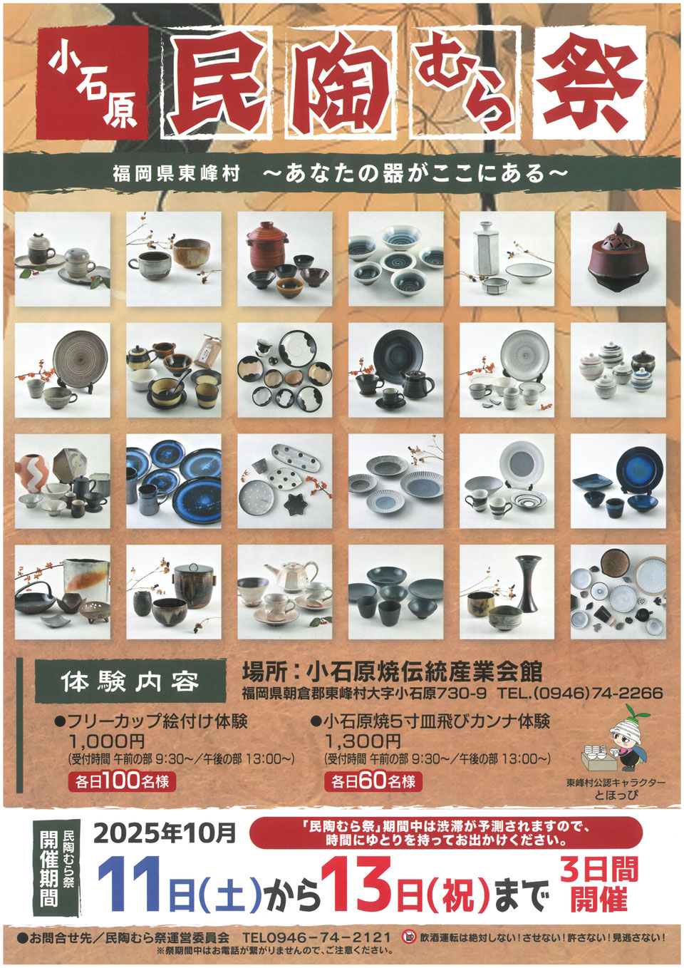 東峰村小石原地区最大の陶器祭「民陶むら祭」が開催されます! 各窯元では、祭りにあわせて窯出しされた陶器が並び、 […]