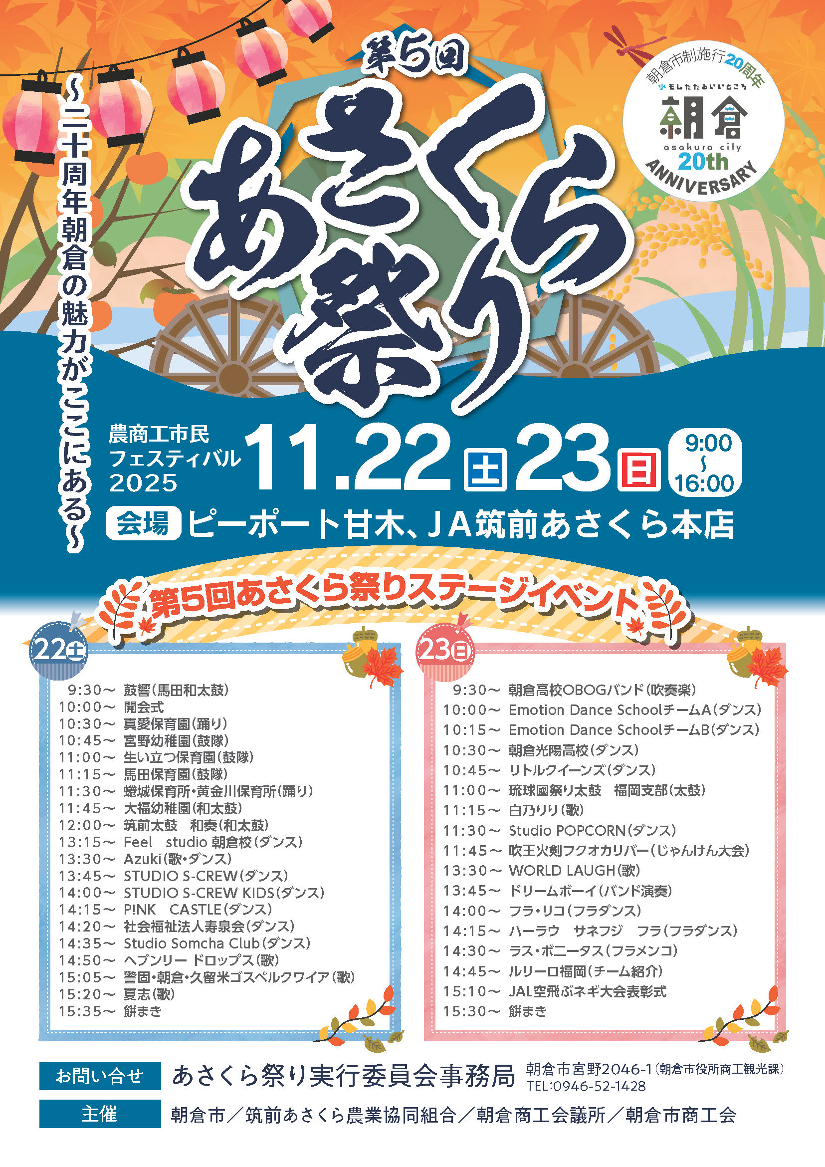 ステージイベントや屋台、楽しいイベント盛りだくさんの「あさくら祭り」が開催されます。 毎年大好評のみかんや柿、 […]