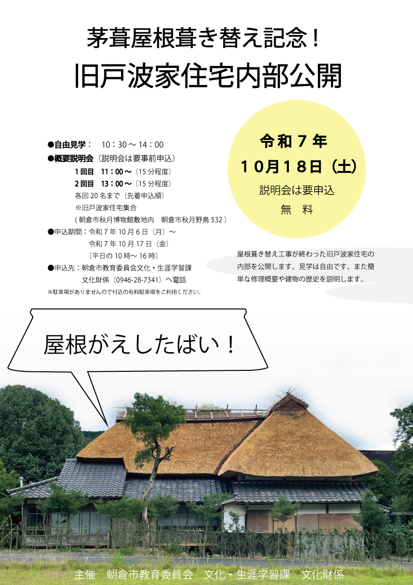 - 茅葺屋根葺き替え記念!旧戸波家住宅内部公開 オン 2025年10月18日 10:30 AM