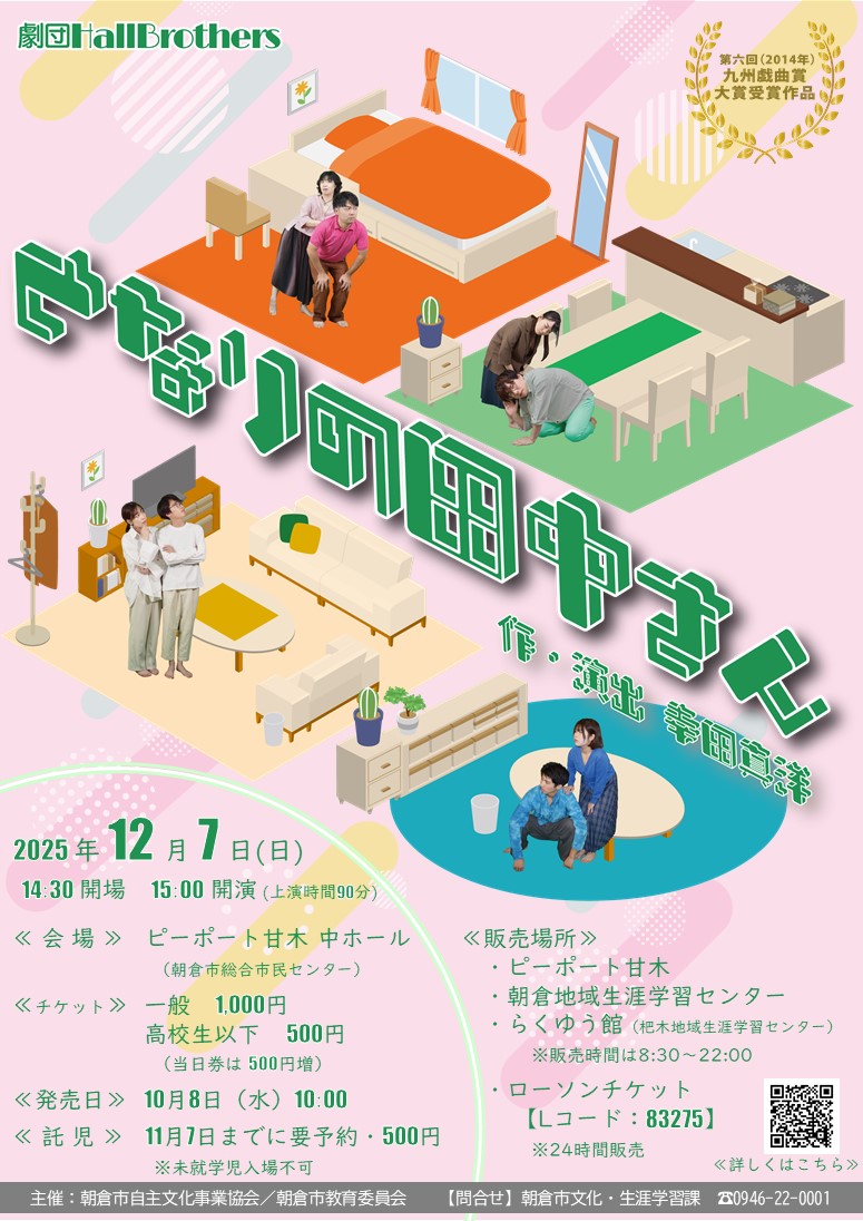 第6回(2014年)九州戯曲賞大賞受賞作品 劇団HallBrothers「となりの田中さん」が上演されます!