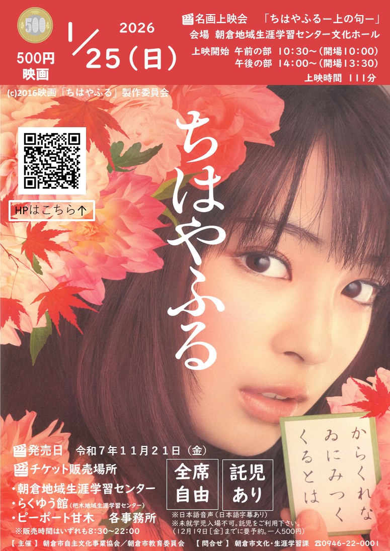 TEL : 0946-22-0001(朝倉市文化・生涯学習課)