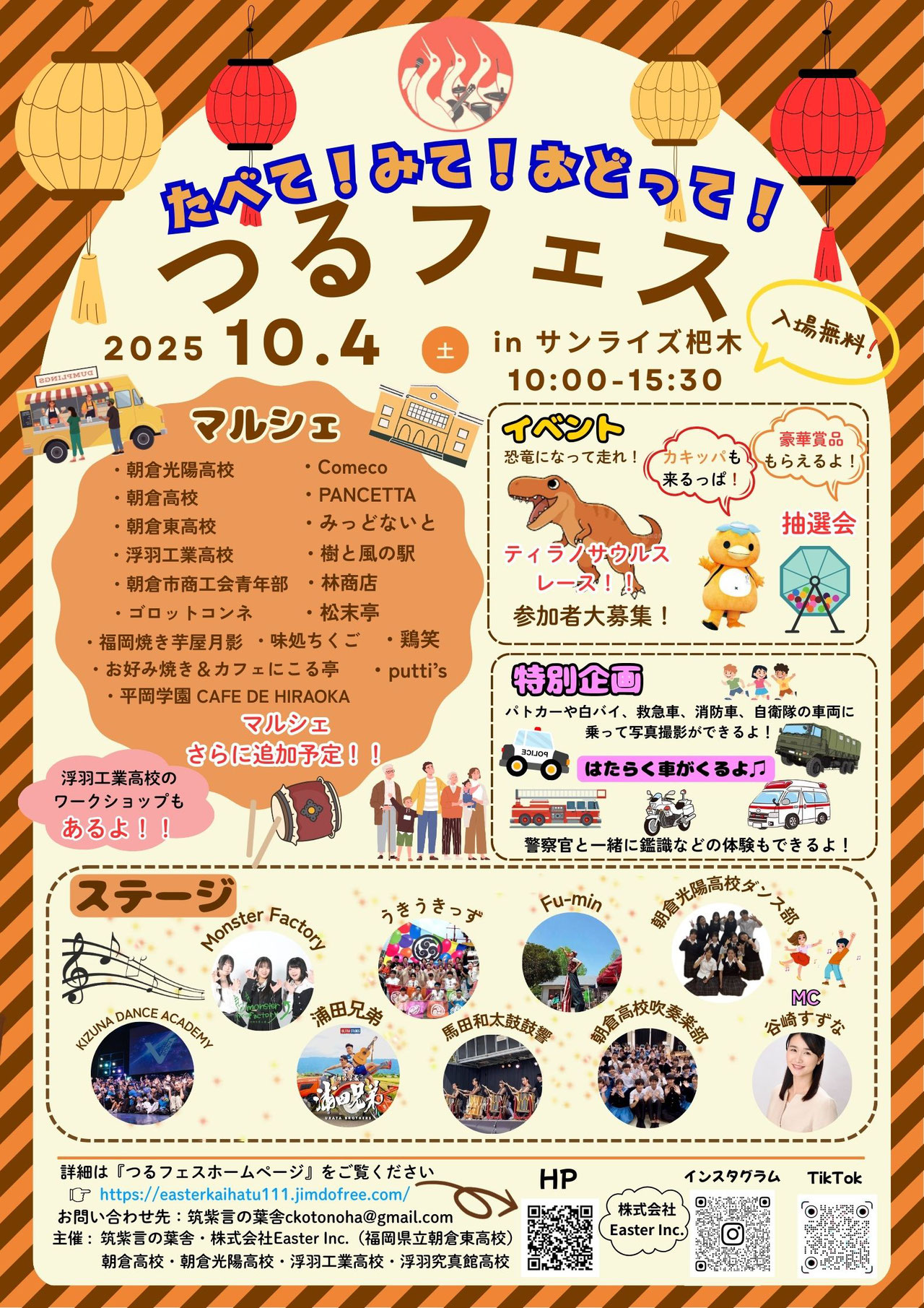 マルシェやステージイベントの他に、豪華景品が当たる抽選会や浮羽工業高校のワークショップ、はたらく車も大集合!